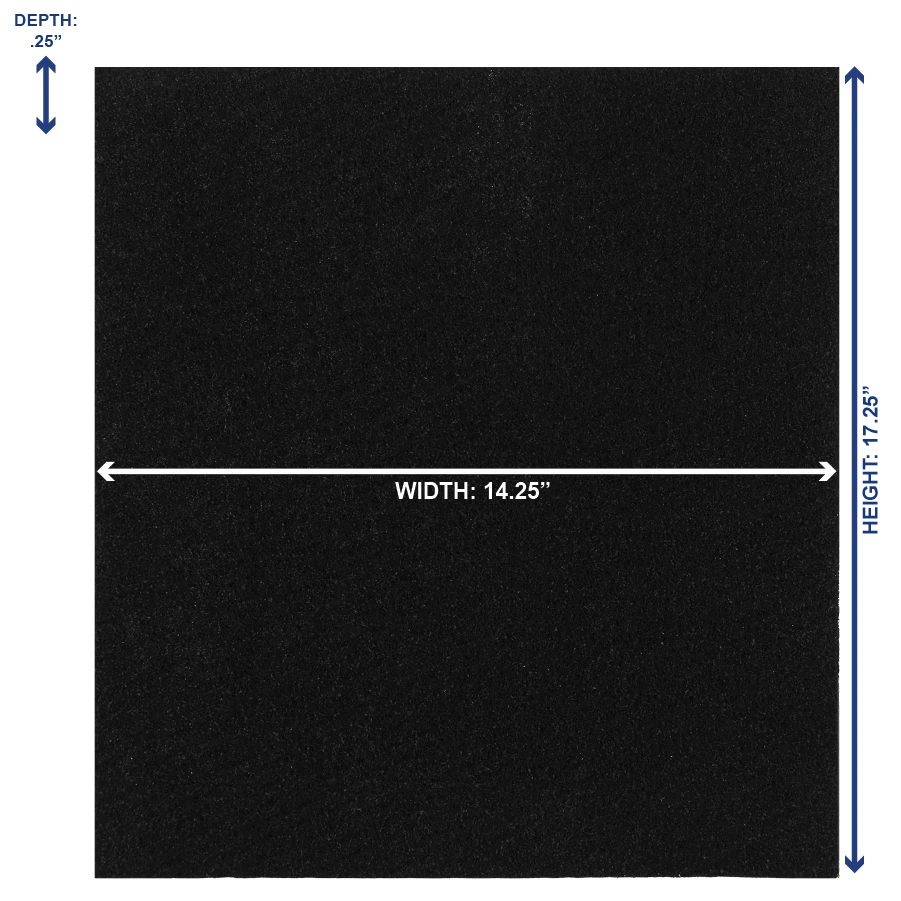 Carbon Pre-Filter Dimensions: 17.25 x 14.25 x .25 inches